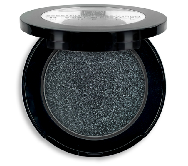 Ombretto compatto Metal Black – nero metallico, intenso, arricchito di micro glitter per un effetto lucente.